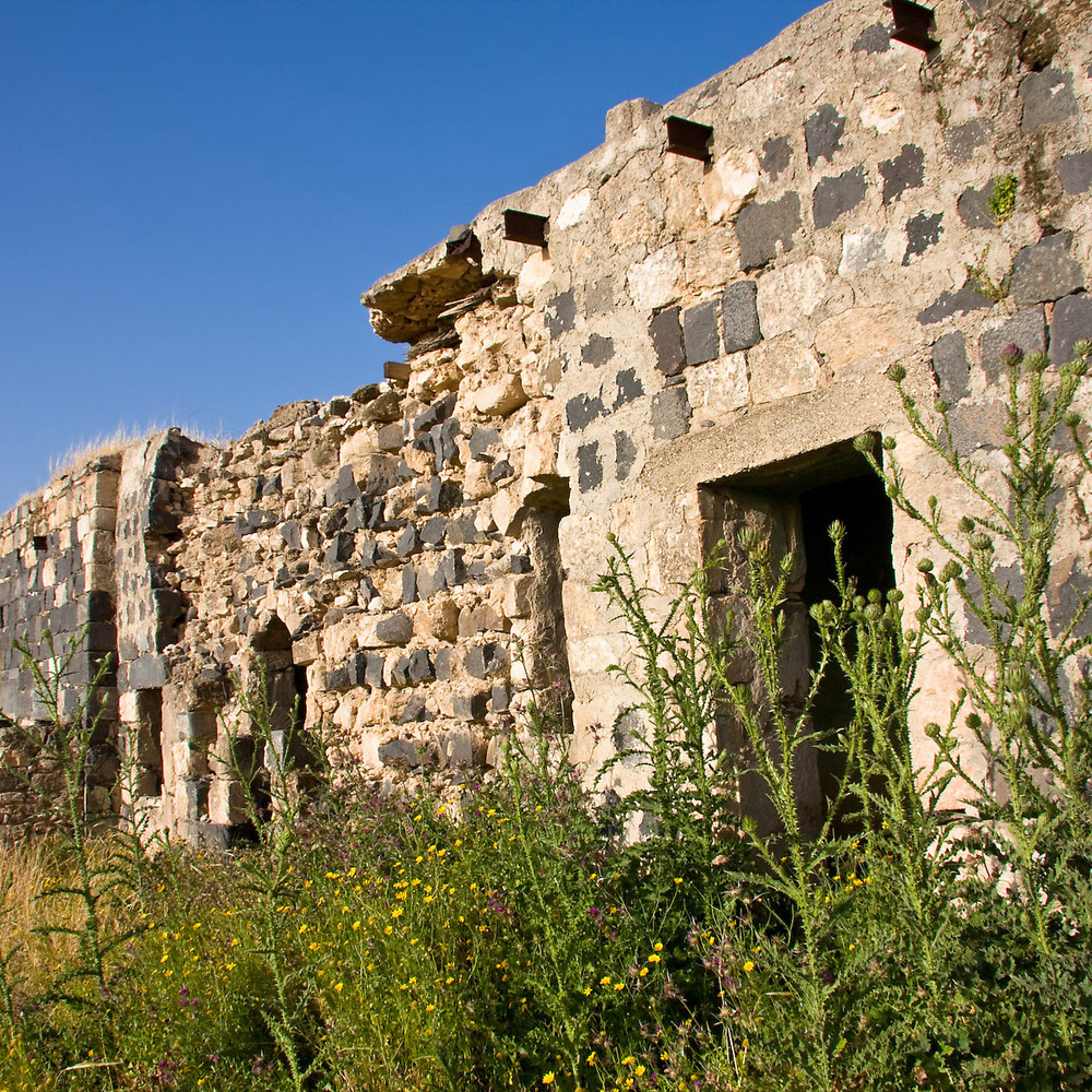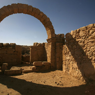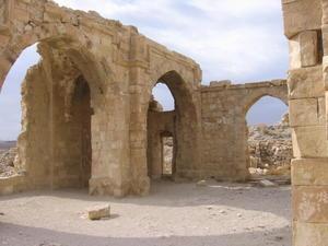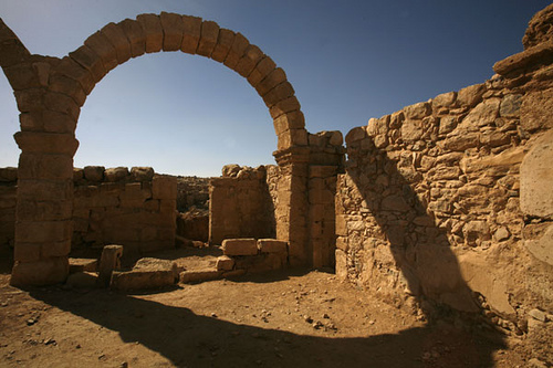 Most of this archaeological site, which started as a Roman military camp and grew to become a town from the 5th century, has not been excavated. It contains remains from the Roman, Byzantine and Early Muslim periods (end of 3rd to 9th centuries AD) and a fortified Roman military camp. The site also has 16 churches, some with well-preserved mosaic floors. Particularly noteworthy is the mosaic floor of the Church of Saint Stephen with its representation of towns in the region. Two square towers are probably the only remains of the practice, well known in this part of the world, of the stylites (ascetic monks who spent time in isolation atop a column or tower). Um er-Rassas is surrounded by, and dotted with, remains of ancient agricultural cultivation in an arid area.